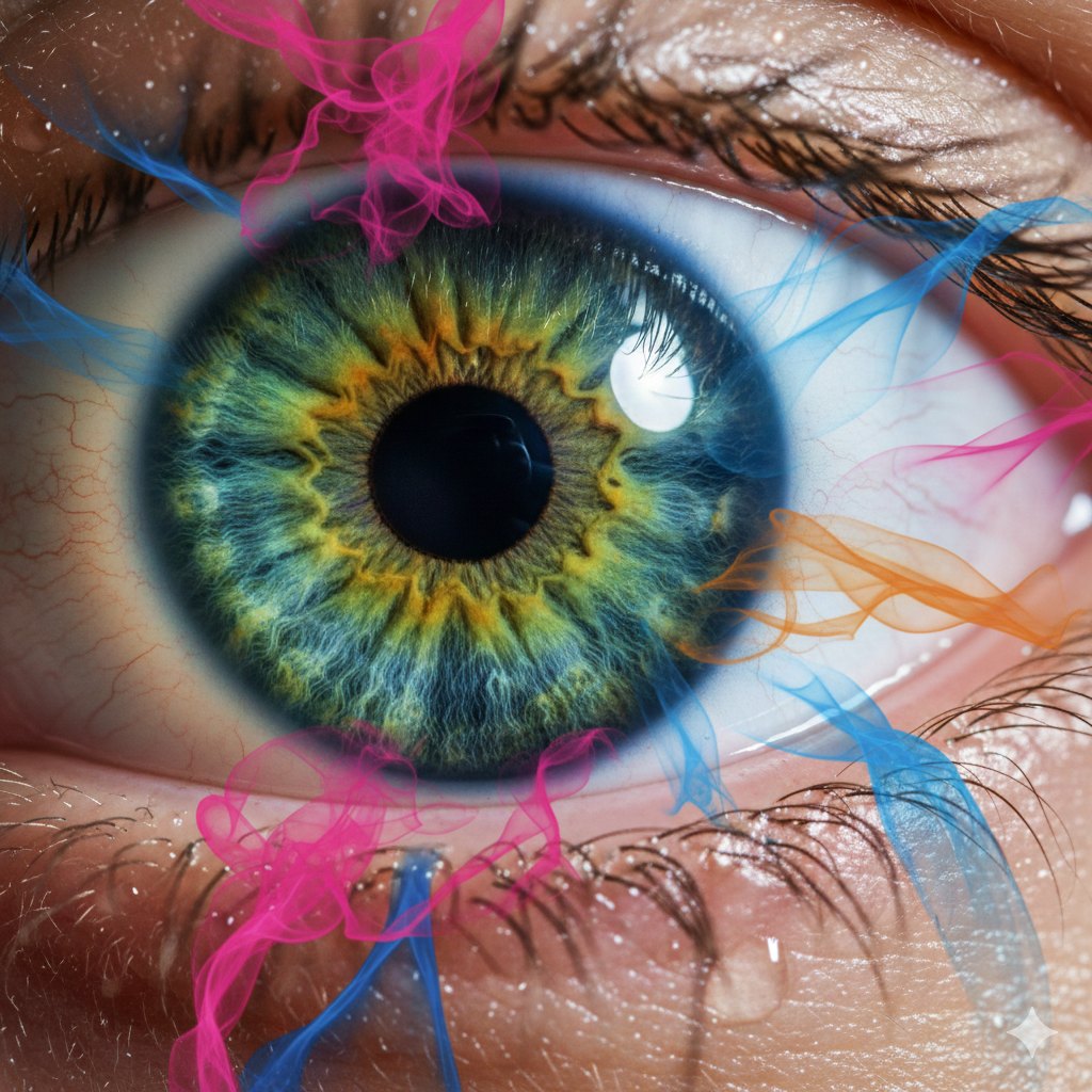 Você sabia que 100% do DNA é incolor, mas ele carrega o código para as cores físicas do corpo humano? O ser humano biologicamente, na sua estrutura, forma e composição, é cor percebida. Seja através da pele, cabelos, pupilas dos olhos, enfim, sem falar na constituição interna e funcionamento do organismo. Respiramos cor em todos os ambientes.